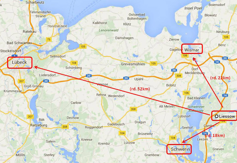 Hier wird die Lage beschrieben. Sie ist eine super Startposition für Ausflüge nach Schwerin, Wismar, Lübeck oder an die Ostsee.