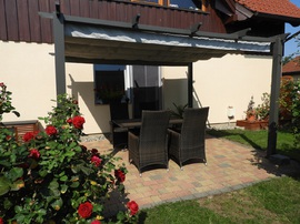 Die Ferienwohnung 2 befindet sich im Erdgeschoß des Haupthauses und hat einen separaten Eingang.